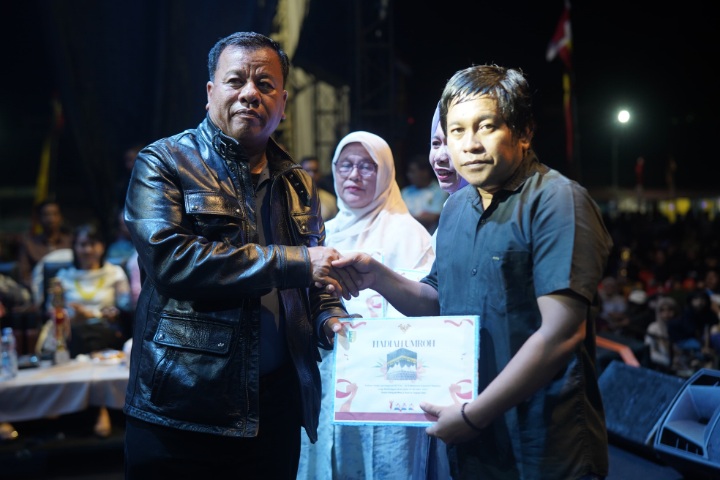 TELUK KUANTAN – Suasana meriah dan penuh haru mewarnai malam puncak penyerahan hadiah Pacu Jalur dalam rangka Hari Ulang Tahun (HUT) Kabupaten Kuantan Singingi ke-26 Tahun 2025, yang digelar di Panggung Utama Eks PT. Ludin, Teluk Kuantan, Ahad malam (12/10/2025). Ribuan masyarakat tumpah ruah memenuhi arena untuk menyaksikan momen bersejarah tersebut.