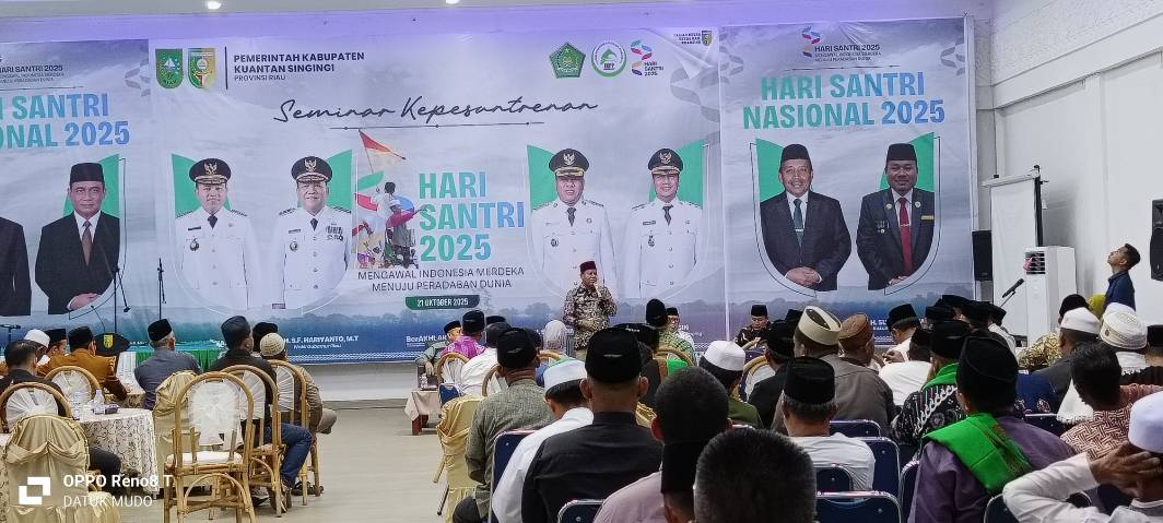 Kegiatan yang digelar dalam rangka peringatan Hari Santri Nasional 2025 ini turut dihadiri Anggota DPR RI, Anggota MPR RI, Kepala Kanwil Kemenag Provinsi Riau, unsur Forkopimda Kuansing, Sekretaris Daerah (Sekda) Kuansing, Staf Ahli Bupati, para Kepala OPD, Camat se-Kabupaten Kuansing, serta pimpinan pondok pesantren dari berbagai daerah di Riau.