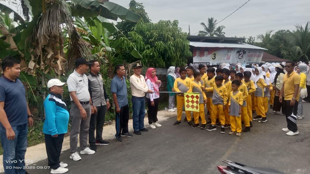 KHS — Semarak peringatan Hari Guru Nasional ke-80 di Kecamatan Kuantan Hilir Seberang (KHS) berlangsung meriah dan penuh kekeluargaan. PC PGRI KHS menggelar Gerak Jalan Santai dengan mengusung motto “Guru Hebat, Pendidikan Kuat, Indonesia Maju”, Kamis (20/11/2025) di kawasan Danau Wisata Desa Danau, Kecamatan Kuantan Hilir Seberang (KHS), Kabupaten Kuantan Singingi (Kuansing), Riau. Kegiatan dimulai pukul 08.30 WIB dan diikuti ratusan peserta dari berbagai unsur pendidikan.