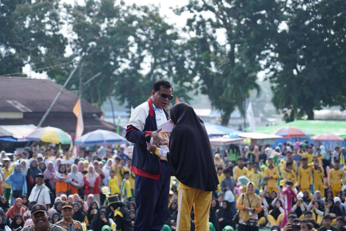 Tak hanya itu, usai kegiatan jalan santai, Bupati Suhardiman turut menyerahkan hadiah dan apresiasi simbolis kepada peserta yang beruntung, termasuk sejumlah pelajar, sebagai bentuk motivasi agar generasi muda Kuansing terus berprestasi.